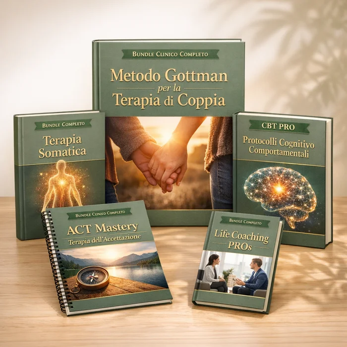 Il Bundle Clinico Completo 5-in-1 è il pezzo mancante che dà struttura e profondità alle tue metafore, trasformandole in percorsi terapeutici completi. Cinque moduli specializzati — al prezzo di una pizza.